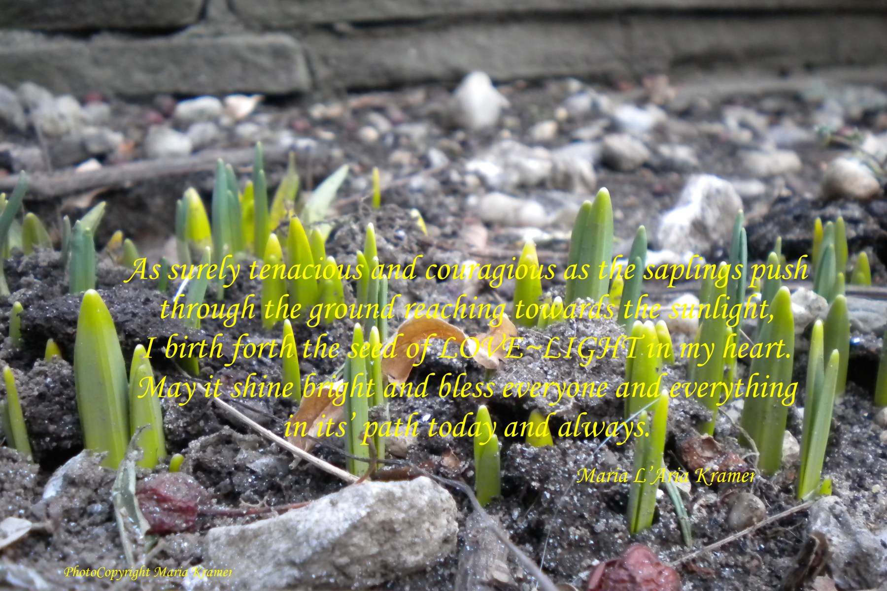 Yippiii March is creating makeovers everywhere externally and I fell internally in many ways as well. The past week has offered us in the Northeast much joy and change in the weather and hence our daily lives from a long winter’s cold, snow and ice that blanketed our land. The absolute joy of watching the daffodils and crocuses beginning to burst forth push through the ground is truly inspiring. The sun warms the face and body as I clean the leaves in the yard now the snow is almost melted. Still some ice left where the sun never reaches. Birds of all colors wait patiently in unity for their turn at the feeder. It is fun to watch who ventures out first and they all follow courageously along. Some are leaders some are followers, just like the two legged humans.